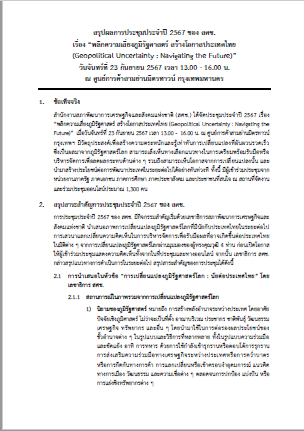 การประชุมประจำปี 2567 “พลิกความเสี่ยงภูมิรัฐศาสตร์ สร้างโอกาสประเทศไทย” (Geopolitical Uncertainty: Navigating the Future)