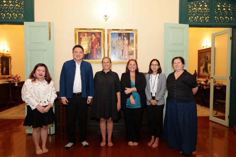 เมื่อวันพฤหัสบดีที่ 17 ตุลาคม 2567 นายวันฉัตร สุวรรณกิตติ รองเลขาธิการ สศช. ให้การต้อนรับ Ms. Cristina Mereuta ผู้เชี่ยวชาญอาวุโสด้านตลาดแรงงาน จาก The European Training Foundation (ETF) Ms. Séverine Leonardi รองผู้แทนองค์การทุนเพื่อเด็กแห่งสหประชาชาติประจำประเทศไทย (UNICEF) และคณะเจ้าหน้าที่จาก UNICEF โดย Ms.Cristina Mereata ได้แสดงความยินดีกับประเทศไทย โดยเฉพาะอย่างยิ่งภาคีการพัฒนาทุกภาคส่วนที่มีส่วนร่วมขับเคลื่อนให้โครงการส่งเสริมและสนับสนุนเยาวชนกลุ่ม NEETs (Youth Not in Education Employment and Training) ในพื้นที่นำร่องจังหวัดอุดรธานี ประสบความสำเร็จตามที่ได้ตั้งเป้าหมายไว้ พร้อมทั้งหารือแนวทางการขยายผลโครงการสู่พื้นที่อื่น รวมถึงความร่วมมือระหว่าง สศช. UNICEF และ ETF ในการผลักดันการช่วยเหลือและสนับสนุนเยาวชนในประเทศไทยอย่างต่อเนื่องและสร้างเครือข่ายการทำงานร่วมกันในอนาคต