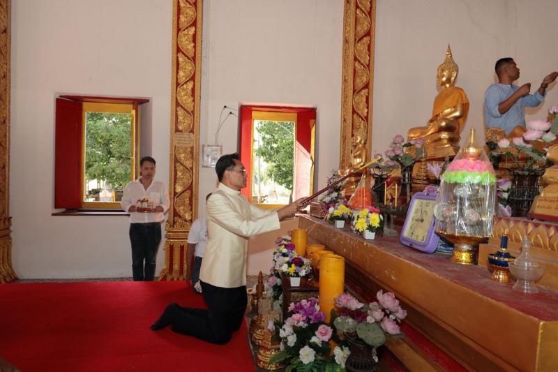 เมื่อคณะเดินทางมาถึง เลขาธิการ สศช. ได้สักการะและห่มผ้าพระประธานที่ประดิษฐานในพระอุโบสถ จากนั้นนำคณะทอดกฐินแห่องค์กฐินรอบพระอุโบสถ 3 รอบ และสักการะพระธาตุเจดีย์ศรีเสนา รวมทั้งร่วมปลูกต้นไม้เป็นที่ระลึก หลังจากนั้นได้ประกอบพิธีทอดกฐิน ณ ศาลาการเปรียญ โดยเมื่อพระสงฆ์เจริญพระพุทธมนต์แล้ว เลขาธิการ สศช. และคณะผู้บริหารและเจ้าหน้าที่ สศช. ได้ร่วมถวายกฐิน ตาลปัตร ผ้าไตร และไทยทาน ฯลฯ