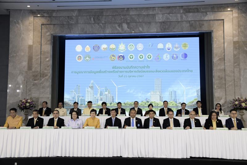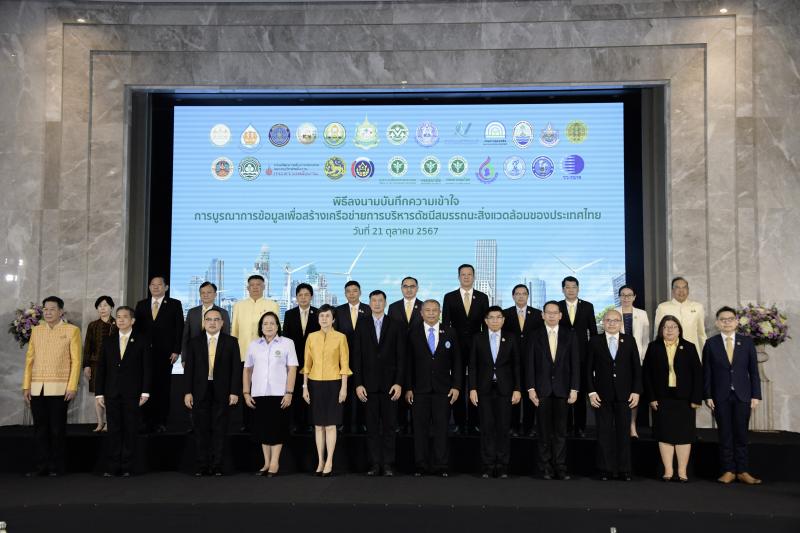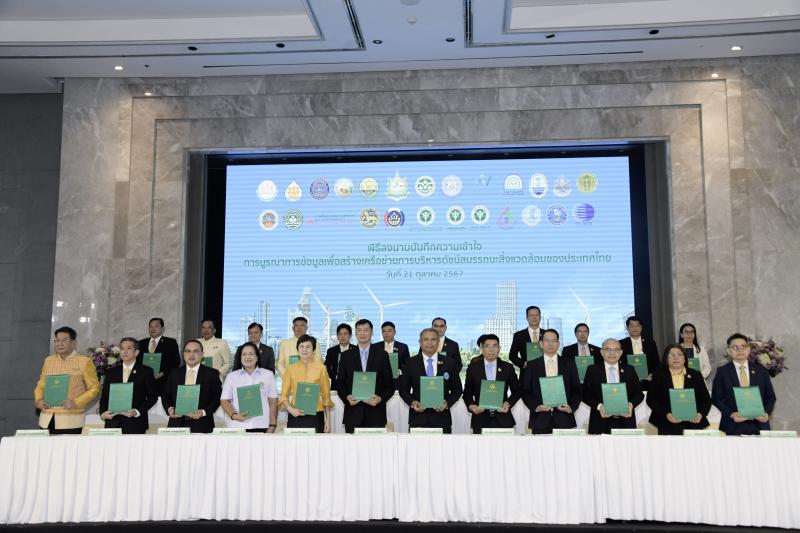ดร. วิชญายุทธ บุญชิต รองเลขาธิการสภาพัฒนาการเศรษฐกิจและสังคมแห่งชาติ ร่วมกล่าววิสัยทัศน์และร่วมลงนามในบันทึกความเข้าใจการบูรณาการข้อมูลเพื่อสร้างเครือข่ายการบริหารดัชนีสมรรถนะสิ่งแวดล้อมของประเทศไทย (Environmental Performance Index: EPI) เมื่อวันที่ 21 ตุลาคม 2567 ณ โรงแรมอมารี กรุงเทพ ซึ่งจัดโดย สำนักงานนโยบายและแผนทรัพยากรธรรมชาติและสิ่งแวดล้อม ร่วมกับหน่วยงานต่าง ๆ ได้แก่ สำนักงานสภาพัฒนาการเศรษฐกิจและสังคมแห่งชาติ สำนักงานทรัพยากรน้ำแห่งชาติ กรมประมง กรมพัฒนาที่ดิน กรมวิชาการเกษตร สำนักงานเศรษฐกิจการเกษตร สำนักงานสถิติแห่งชาติ กรมควบคุมมลพิษ กรมทรัพยากรทางทะเลและชายฝั่ง กรมทรัพยากรน้ำ กรมป่าไม้ กรมอุทยานแห่งชาติ สัตว์ป่าและพันธุ์พืช กรมการเปลี่ยนแปลงสภาพภูมิอากาศและสิ่งแวดล้อม กรมพัฒนาพลังงานทดแทนและอนุรักษ์พลังงาน กรมการปกครอง กรมการพัฒนาชุมชน สำนักงานปลัดกระทรวงสาธารณสุข กรมควบคุมโรค กรมอนามัย สำนักงานคณะกรรมการอ้อยและน้ำตาลทราย การประปานครหลวง การประปาส่วนภูมิภาค สถาบันวิจัยวิทยาศาสตร์และเทคโนโลยีแห่งประเทศไทย โดยมี วัตถุประสงค์ เพื่อแสดงเจตนารมณ์ในการบูรณาการข้อมูลเพื่อสร้างเครือข่ายการบริหาร EPI ของประเทศไทย รวมทั้งประสานความร่วมมือและผลักดันให้ประเทศไทยมีสมรรถนะด้านสิ่งแวดล้อมดีขึ้น และสามารถบรรลุเป้าหมายที่กำหนดไว้ ตลอดจน เพื่อสร้างความตระหนักให้แก่หน่วยงานและภาคส่วนที่เกี่ยวข้องในการร่วมกันแก้ปัญหาและบริหารจัดการทรัพยากรธรรมชาติและสิ่งแวดล้อมของประเทศ โดยมีผู้แทนจากหน่วยงานภาครัฐ รัฐวิสาหกิจ ร่วมเป็นสักขีพยาน ประมาณ 100 คน