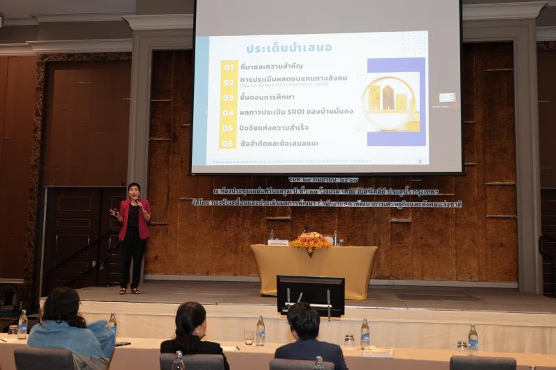 การประชุมในครั้งนี้ มีวัตถุประสงค์เพื่อเผยแพร่ผลการประเมินผลกระทบ กรณีศึกษาโครงการบ้านมั่นคง จังหวัดขอนแก่น รวมทั้ง ถ่ายทอดองค์ความรู้และแลกเปลี่ยนเรียนรู้ เกี่ยวกับเครื่องมือการประเมินผลกระทบที่พัฒนาขึ้นให้กับหน่วยงานที่เกี่ยวข้อง โดยในช่วงบ่ายของวันที่ 24 กันยายน 2567 และวันที่ 25 กันยายน 2567 สำนักงานฯ จัดให้มีการประชุมเชิงปฏิบัติการ เพื่อถ่ายทอดเทคนิคการใช้เครื่องมือ SROI ให้แก่ภาคีการพัฒนาที่เกี่ยวข้องได้นำไปขยายผลต่อยอดการประเมินผลกระทบโครงการของหน่วยงานต่อไป โดยมีผู้เข้าร่วมการอบรมประกอบด้วย หน่วยงานภาคราชการ นักวิชาการที่เกี่ยวข้อง จำนวนประมาณ 50 คน