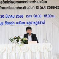 เมื่อวันที่ 30 มีนาคม 2566 นายเอนก มีมงคล รองเลขาธิการสภาพัฒนาการเศรษฐกิจและสังคมแห่งชาติ เป็นประธานเปิดการสัมมนา “แนวทางการขับเคลื่อนแผนพัฒนาเศรษฐกิจและสังคมแห่งชาติ ฉบับที่ 13 หมุดหมายที่ 8 ไทยมีพื้นที่และเมืองอัจฉริยะที่น่าอยู่ ปลอดภัย เติบโตได้อย่างยั่งยืน” ภายใต้โครงการจัดทำร่างยุทธศาสตร์การพัฒนาเมือง ในช่วงแผนพัฒนาเศรษฐกิจและสังคมแห่งชาติ ฉบับที่ 13 (พ.ศ. 2566-2570) ซึ่งเป็นเวทีสัมมนาระดับภาค ครั้งที่ 4 ภาคใต้ และได้รับเกียรติจากนายชูศักดิ์ รู้ยิ่ง รองผู้ว่าราชการจังหวัดสุราษฎร์ธานี กล่าวต้อนรับผู้เข้าร่วมสัมมนา ณ โรงแรมแก้วสมุย รีสอร์ท จังหวัดสุราษฎร์ธานี โดยมีผู้เข้าร่วมสัมมนาประมาณ 100 คน จากภาคีการพัฒนาที่เกี่ยวข้องทั้งภาครัฐ ภาคเอกชน ภาคการศึกษา และภาคประชาสังคม จากกลุ่มจังหวัดภาคใต้ 11 จังหวัด นอกจากนี้ ดร.ศักดา ขจรบุญ คณบดีคณะศิลปศาสตร์และวิทยาการจัดการ มหาวิทยาลัยสงขลานครินทร์ วิทยาเขตสุราษฎร์ธานี พร้อมทั้งคณะวิทยากรจากมหาวิทยาลัยสงขลานครินทร์ ได้ให้ความอนุเคราะห์เป็นวิทยากรกระบวนการตลอดการสัมมนาฯ