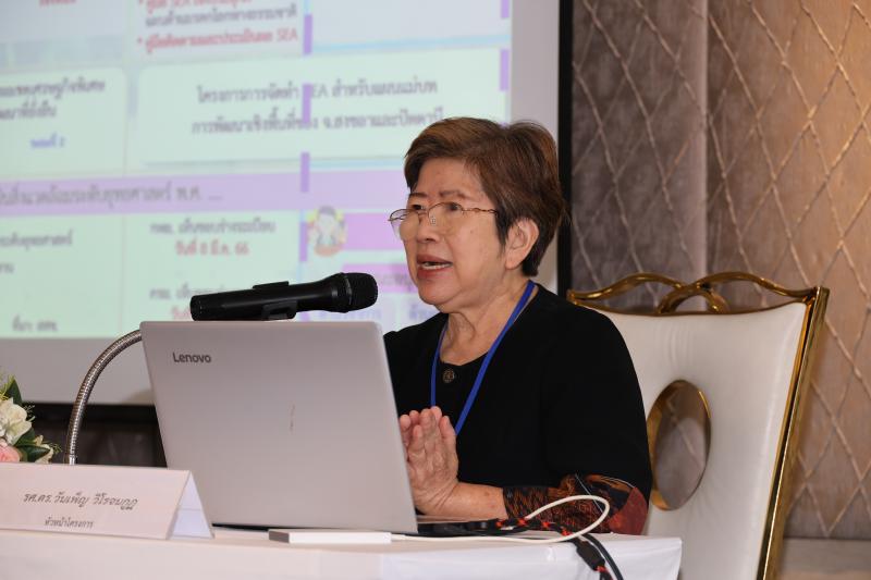 ดร.วิชญายุทธ บุญชิต กล่าวว่า สศช. ได้ขับเคลื่อน SEA มาอย่างต่อเนื่อง ตั้งแต่ปี 2560 โดยมีวัตถุประสงค์เพื่อให้การจัดทำ SEA มีคุณภาพ มีมาตรฐาน และเป็นไปในทิศทางเดียวกัน รวมทั้งสนับสนุนให้หน่วยงานต่าง ๆ มีการนำ SEA ไปใช้ในการจัดทำแผนอย่างเป็นวงกว้าง โดยให้ความสำคัญกับการสร้างความรู้ความเข้าใจเกี่ยวกับ SEA ให้แก่ภาคส่วนต่าง ๆ ผ่านการจัดฝึกอบรม การสัมมนาเชิงวิชาการ การจัดทำสื่อสารสนเทศ การจัดทำร่างระเบียบสำนักนายกรัฐมนตรีว่าด้วยการประเมินสิ่งแวดล้อมระดับยุทธศาสตร์ พ.ศ. …. การจัดทำแนวทางการประเมินสิ่งแวดล้อมระดับยุทธศาสตร์ (SEA Guideline) รวมทั้งการจัดทำคู่มือ SEA เชิงประยุกต์ต่าง ๆ เพื่ออำนวยความสะดวกให้กับหน่วยงานเจ้าของแผนและผู้เกี่ยวข้องให้สามารถนำกระบวนการ SEA มาประยุกต์ใช้ในการจัดทำแผนได้อย่างสะดวกและมีประสิทธิภาพมากขึ้น โดยปัจจุบัน สศช. อยู่ระหว่างการจัดทำคู่มือ SEA เพื่อการวางแผนที่เกี่ยวข้องกับมรดกโลกทางธรรมชาติ ด้วยความร่วมมือกับกรมอุทยานแห่งชาติ สัตว์ป่า และพันธุ์พืช ซึ่งเป็นหนึ่งในหน่วยงานที่กำลังจะมีการนำกระบวนการ SEA ไปใช้ในการจัดทำแผนจัดการแหล่งมรดกโลกกลุ่มป่าดงพญาเย็น-เขาใหญ่ ตามมติคณะกรรมการมรดกโลก สศช. จึงกำหนดจัดการสัมมนาเชิงวิชาการฯ ในครั้งนี้