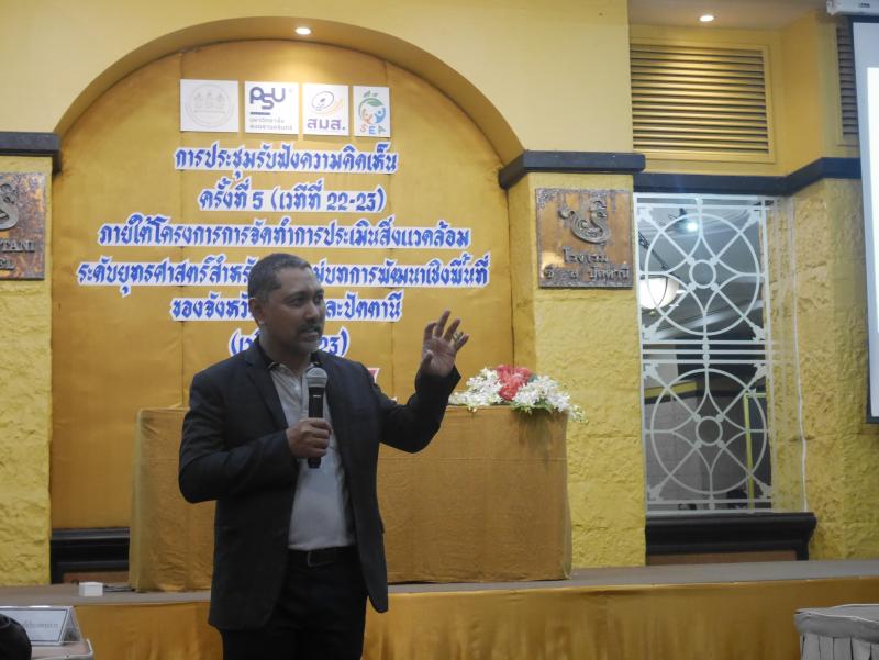 สภาพัฒน์ฯ ร่วมกับ มอ. จัดประชุมรับฟังความคิดเห็น ครั้งที่ 5 ภายใต้โครงการการจัดทำการประเมินสิ่งแวดล้อมระดับยุทธศาสตร์ สำหรับแผนแม่บทการพัฒนาเชิงพื้นที่ของจังหวัดสงขลาและปัตตานี