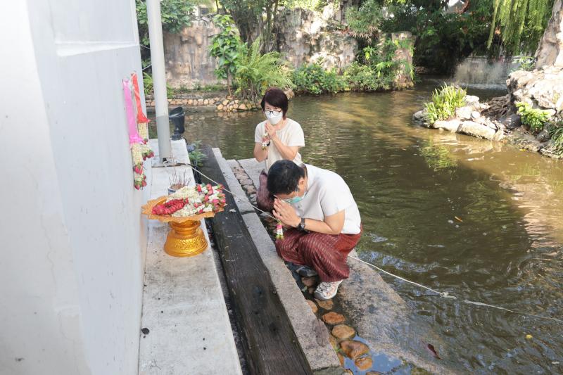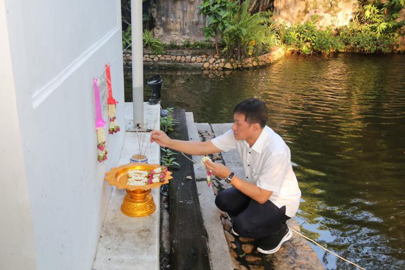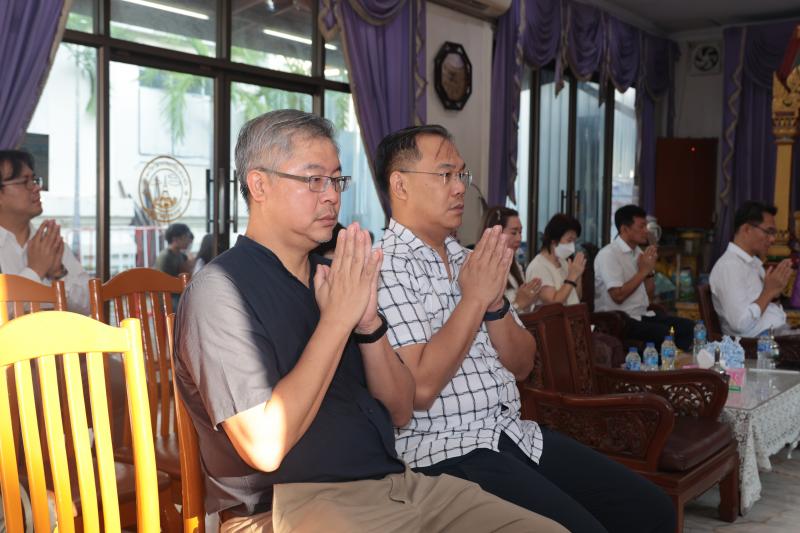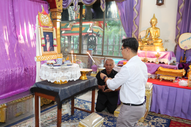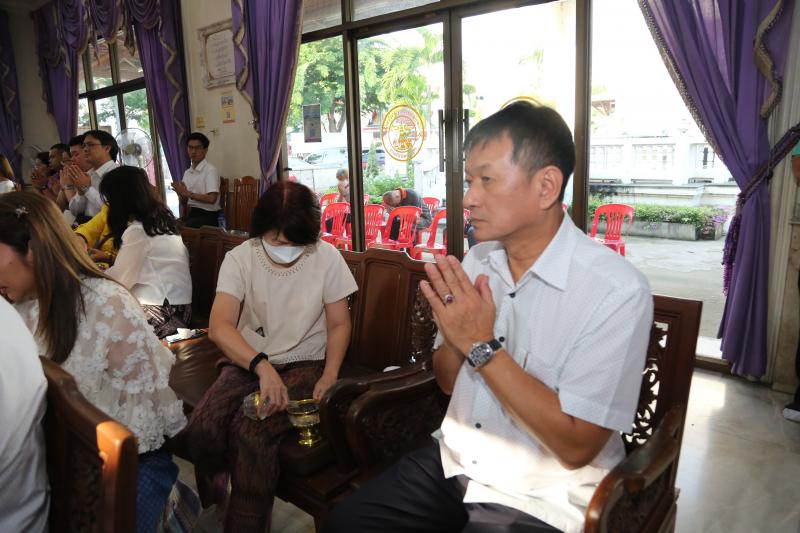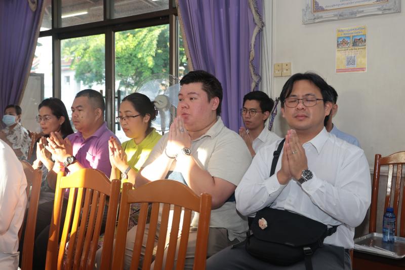 เมื่อเดินทางไปถึงวัดประยุรวงศาวาสวรวิหาร เลขาธิการ คณะผู้บริหารและเจ้าหน้าที่ สศช. ได้นำพวงมาลัยไปสักการะอัฐิพระยาสุริยานุวัตร ณ พระมณฑปทรงโกธิก ทางทิศใต้ของเขามอ หลังจากนั้นเริ่มพิธีทางศาสนา ณ ศาลา 3 โดยเลขาธิการฯ ได้จุดธูปเทียน และถวายพวงมาลัยบูชาพระรัตนตรัย และรับศีลจากพระสงฆ์ จากนั้นผู้บริหาร สศช. ร่วมถวายภัตตาหารเช้า ถวายผ้าไตร บังสุกุล และเครื่องไทยธรรม แด่พระสงฆ์ จำนวน 9 รูป ต่อจากนั้นพระสงฆ์สวดอนุโมทนา ผู้บริหารและผู้เข้าร่วมพิธีกรวดน้ำรับพร เป็นอันเสร็จพิธี